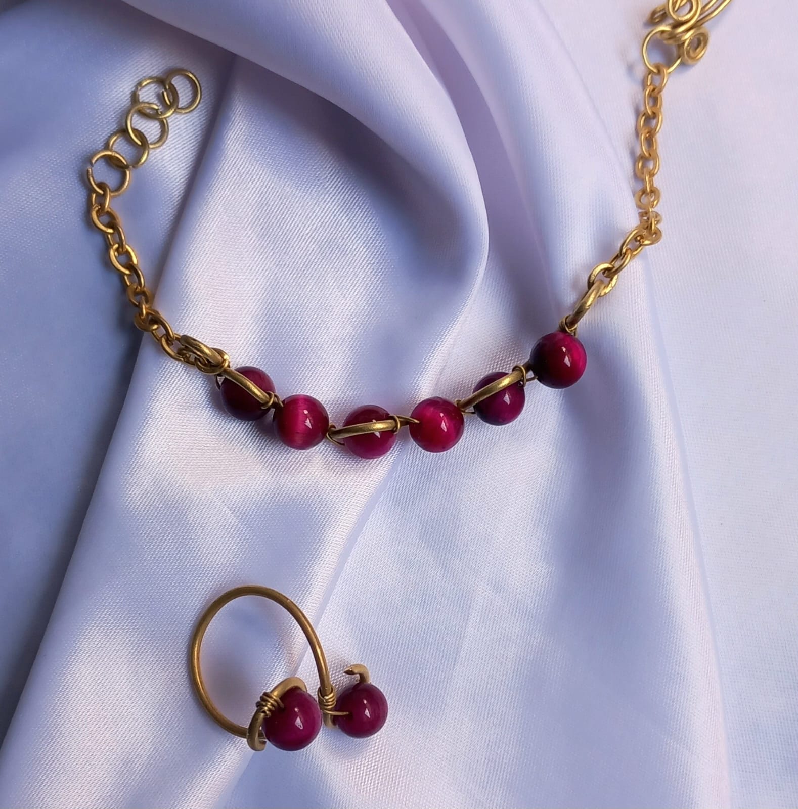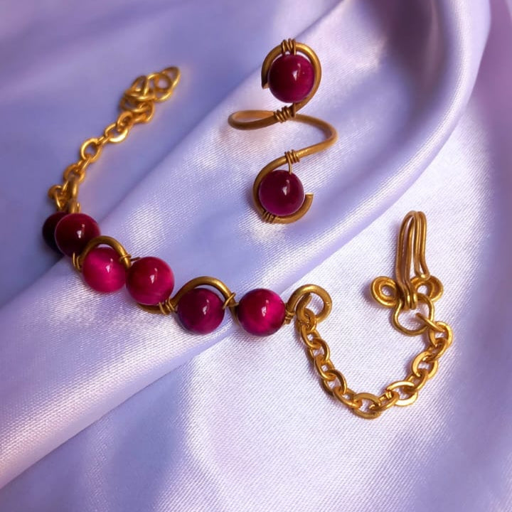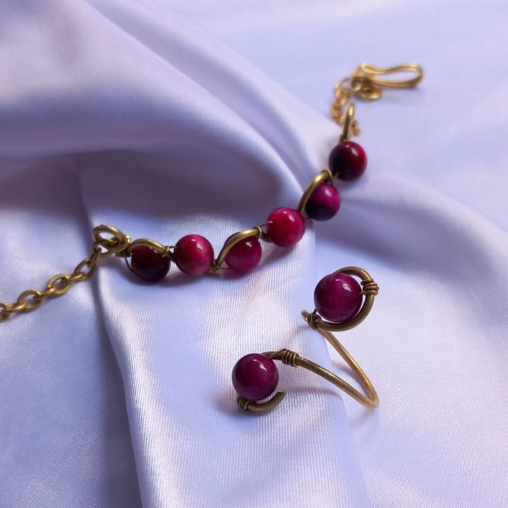 خاتم وانسيال من حجر كات اي الطبيعي مصنوع يدويا من النحاس