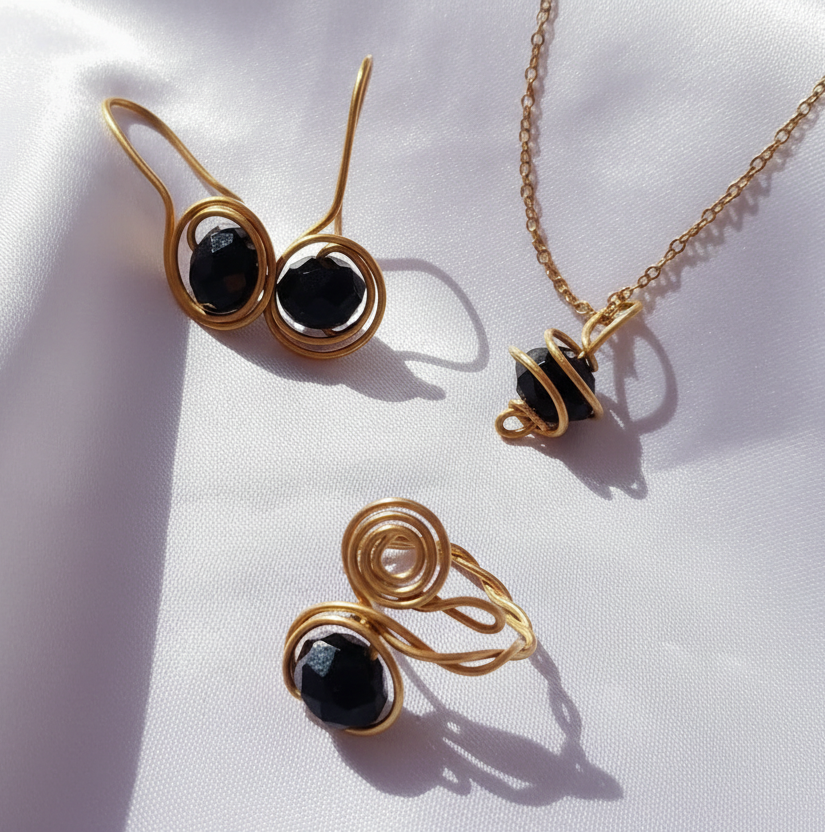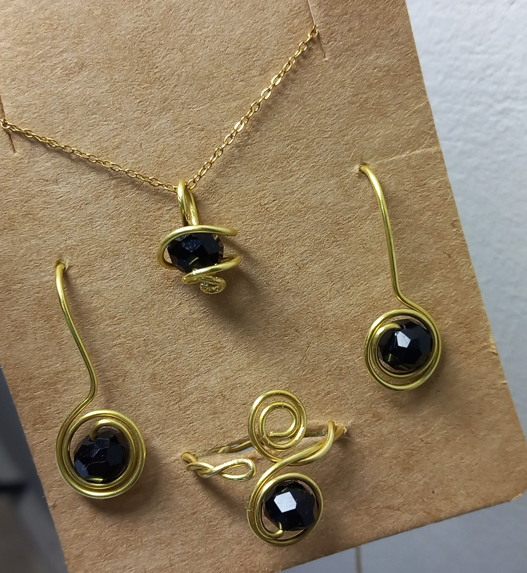 طقم  فري سايز هاند ميد حلق وسلسلة وخاتم كريستال ونحاس