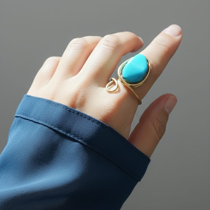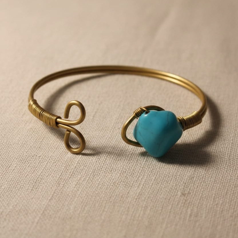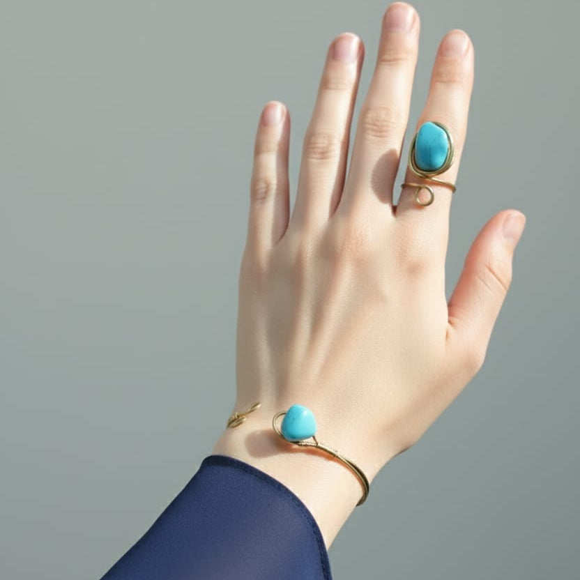 اسورة وخاتم فيروزي مصنوعة يدويا من النحاس