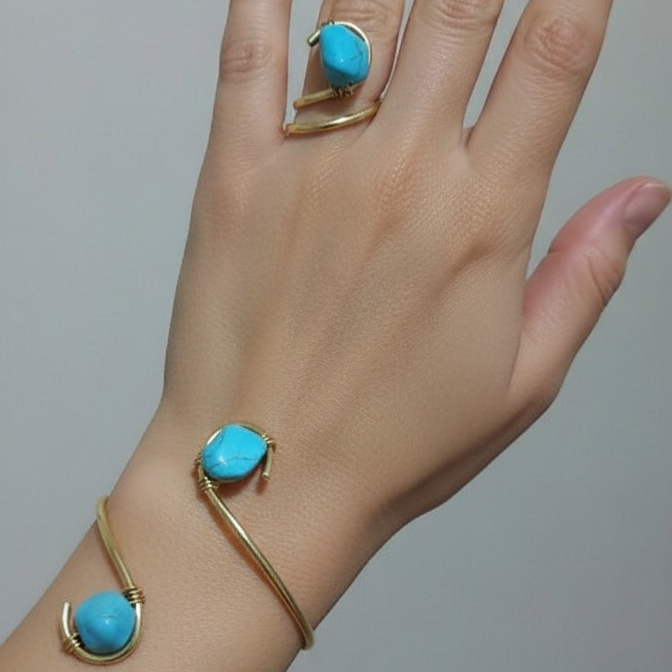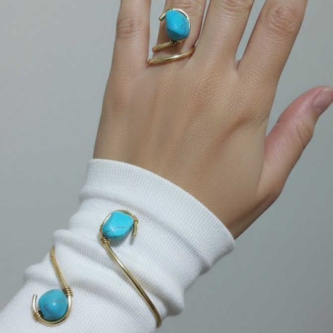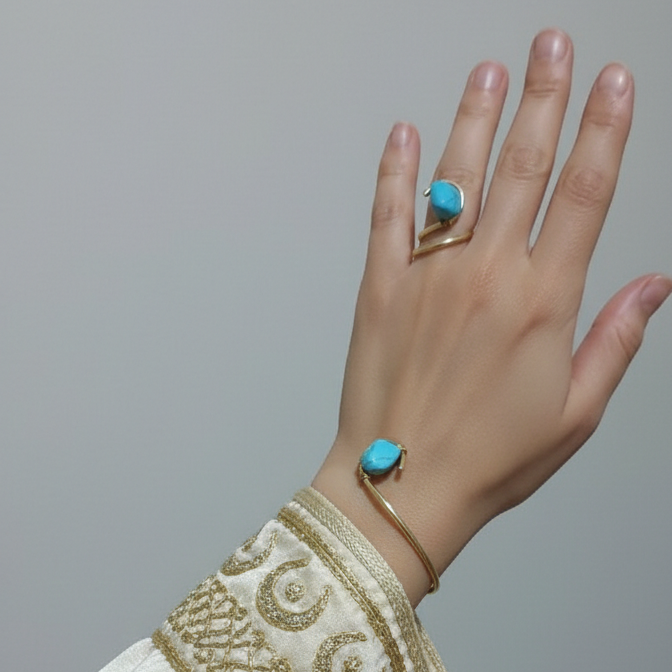 اسورة وخاتم من حجر الفيروز الصناعي