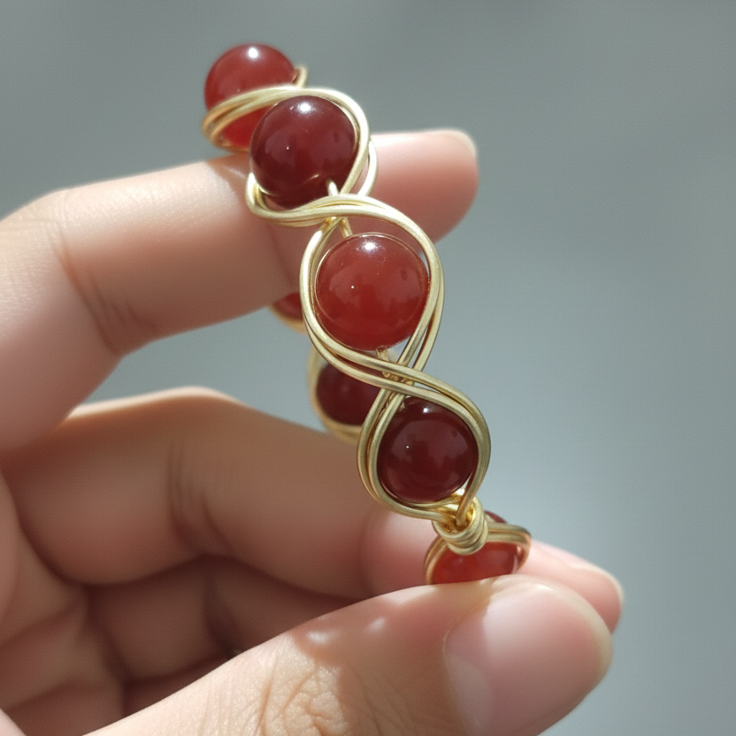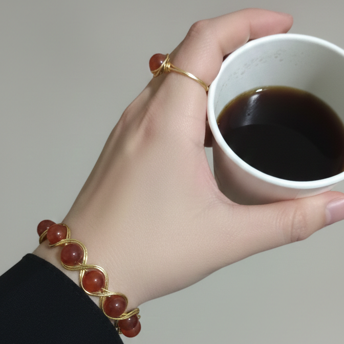 إسورة وخاتم من حجر العقيق الطبيعي باللون البني المحمر